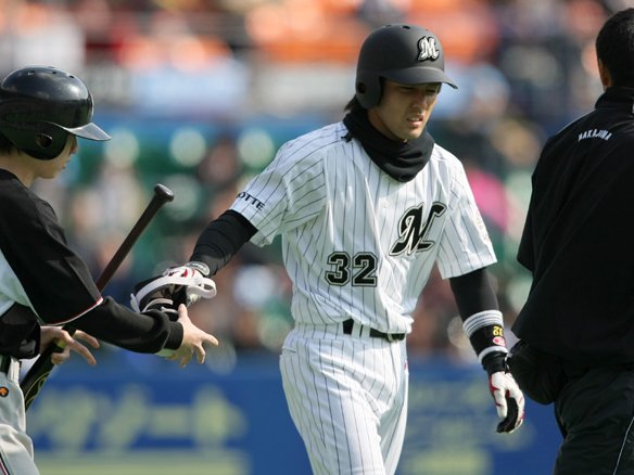 里崎はスライダーを振り抜くが惜しくも遊ゴロに倒れる