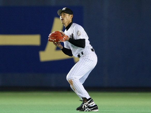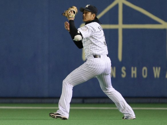7番 中村紀 右飛 2-1からの4球目、アウトコース低めのカーブで泳がせた打球は、ライト・サブローがほぼ定位置でキャッチ!! |