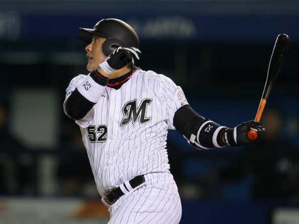 初回に先制の犠牲フライを放った金泰均が、今度は先頭打者としてヒットで出塁しましたが、追加点の足掛かりにはなりませんでした・・・。試合はここまで唐川と永井の投手戦になっていますが、マリーンズ打線は得意の連打を見せて、この状況を打破したいところです!! |