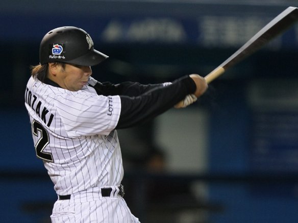 1番 西岡 中安 1-1からの3球目、アウトコースのフォークボールをセンター返しした打球は、センター・聖澤の前で弾んだ!! 2塁ランナー・里崎は3塁を回ったところでストップ。 |