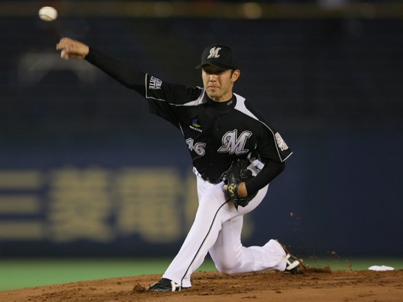 7番 リンデン 二ゴ 0-1から真ん中のストレートを引っ張られたが、痛烈な当たりとなった打球はセカンド・井口が体を入れてワンバウンドで捕球し1塁に送球した。 |