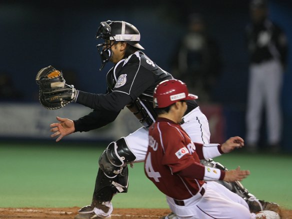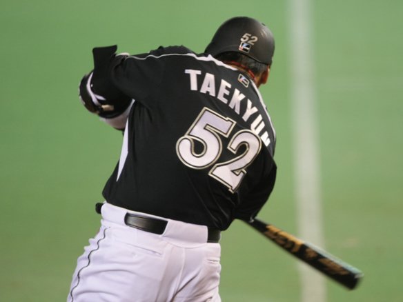 2番 鉄平 一ゴ 2-1からアウトコース低めのスライダーを引っ張られ、鋭い当たりとなった打球はファースト・金泰均がワンバウンドで捕球し自らベースを踏んだ。 |