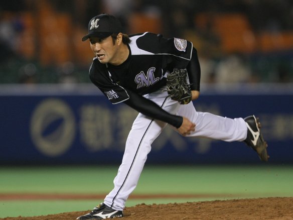 2番 鉄平 見三振 0-1からインコースに外れるスライダーをキャッチャー・里崎が後逸してしまった・・・。その間に2塁ランナー・聖澤は3塁に進塁。記録はワイルドピッチ。 |