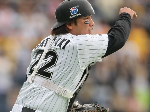 8番 里崎 四球 フルカウントから大きく外れたカーブを悠然と見送った! |
