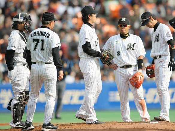 成瀬は本来のピッチングを取り戻し、4番・小久保から始まる攻撃を3人で仕留めました! 打線にとって3点差はワンチャンスで返すことができる点差です。ここからマリーンズの逆襲がスタートします! |
