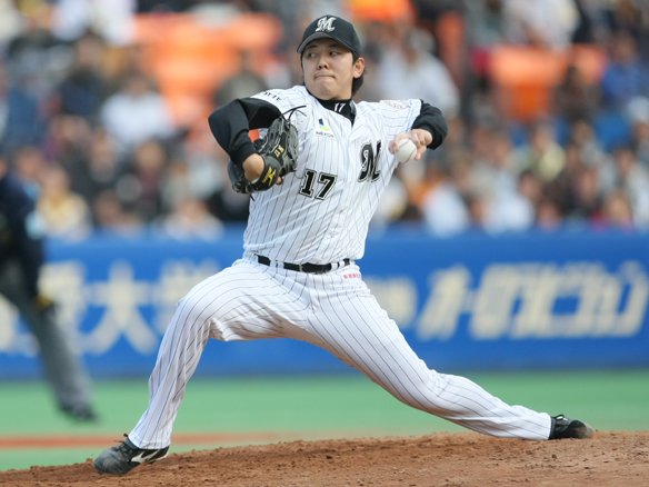 前夜は雨が降り続く悪天候の中試合が行われましたが、今日は一転して快晴となった千葉マリンスタジアム。マウンドに上がった成瀬は、本多にヒットを許しましたが、女房役・里崎が本多の盗塁を封じ、3人で抑える上々の立ち上がりとなりました! 初回からホークス先発・小椋に襲いかかり、先制点を奪っていきましょう! |