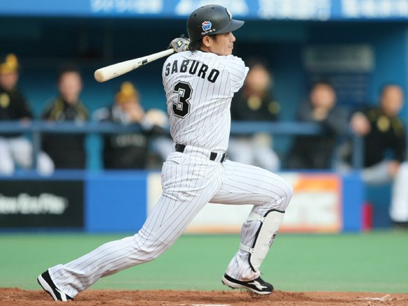 6番 サブロー 四球 フルカウントから低く外れたストレートを見送った! |