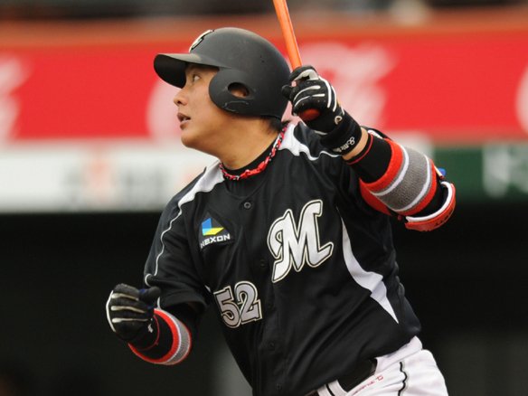 6番 サブロー 右翼二 2-0からストレートを流した打球はライト線でバウンドし、フェンスまで到達した! 2塁ランナー・金泰均が生還して8対3。 打ったサブローは2塁へ!! ![]() 2