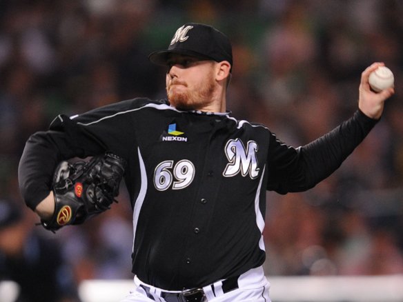 マーフィーはキャッチャー・里崎が盗塁を刺すなど、バックの守りにも助けられ3人でホークスの攻撃を終え、最少失点で5回を投げ終えました! 2点リードに油断することなく、さらに大隣を追い込みリードを広げていきたいところです! |