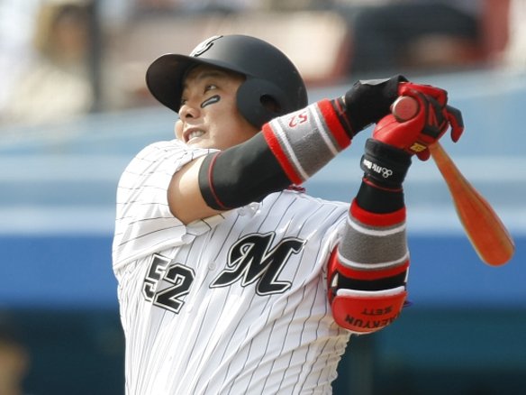 4番 金泰均 左翼安 1-1からの3球目、真ん中高めのシュートを引っ張った強烈な打球は、レフト線方向に伸びていき、フェンスに到達!! 3塁ランナー・西岡がホームイン!! 8対5。打った金泰均はレフト・森本からのすばやく送球されて2塁手前でタッチアウト。1塁ランナー・井口は3塁へ進んだ。 ![]() 7