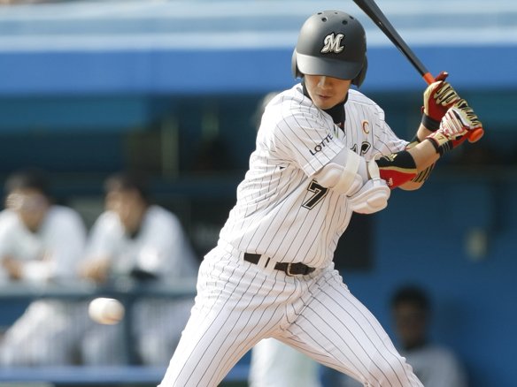 投手 増井 3番 井口 中飛 初球、アウトコース高めのストレートを弾き返した打球は伸びが足りず、センター・糸井にキャッチされてしまった。 |