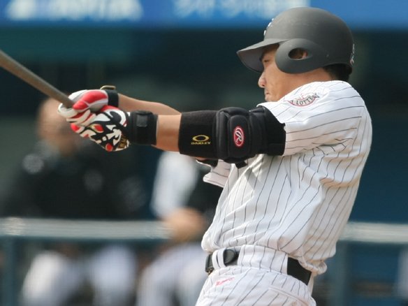 4番 金泰均 左本 1-2から真ん中高めのストレートを狙いすまして振り抜いた打球は、打った瞬間にそれと分かる当たりでレフトスタンド上段に飛び込んだ! 金泰均の2試合連続となる8号ソロで2対1! 井口、金泰均の連続アーチでこの回逆転に成功!! ![]() 2