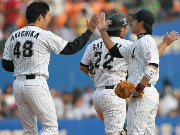 この回先頭の里崎がフォアボールで出塁しましたが、後続が続かず無得点に終わりました。さあ、9回表をしっかり無失点に封じて、勝利をつかみ取りましょう! |