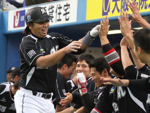 投手 金子千 追加点を取りたい打線はこの回、今江のヒットや西岡のフォアボールなどで満塁のチャンスを作ると井口の犠牲フライでリードを広げ、続く金泰均の3ランで6対1とバファローズを突き放しました! |