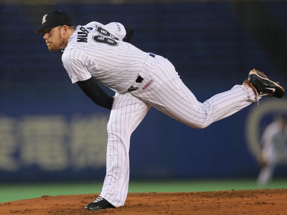 先頭の谷繁に四球を与えましたが、後続を変化球で打たせてとりました! マーフィーのピッチングがチームを鼓舞し、打線に火をつけます! |