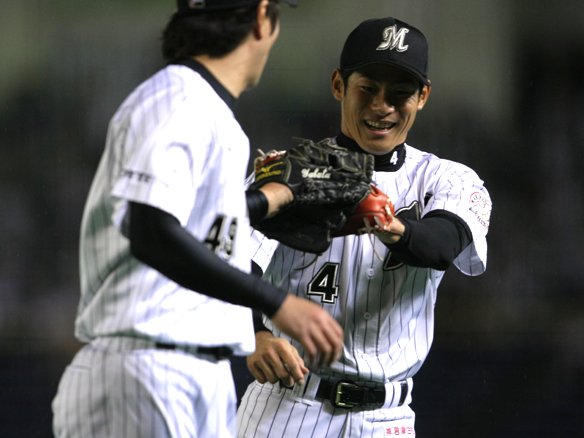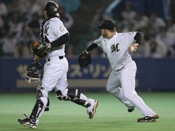 8番 里崎 三ゴ 0-1からアウトコースのスライダーを引っ張ったが、サード・森野の正面に打球が飛んでしまい、森野が3塁ベースを踏んだ。 |
