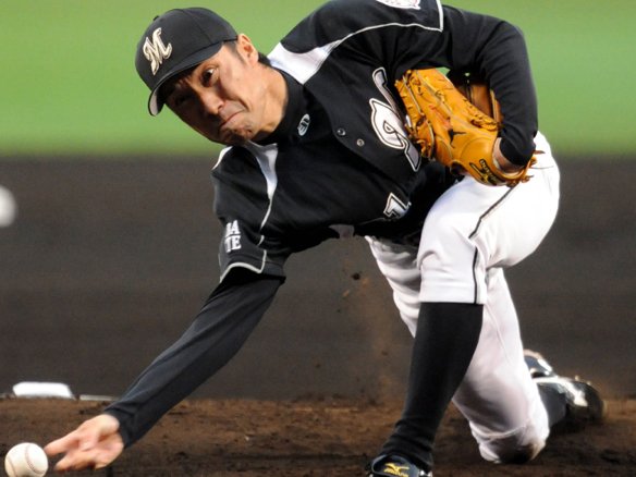 投手 久保 4番 金泰均 空三振 2-2からの5球目、アウトコース低めに遠く逃げていく軌道のフォークボールに手が出てしまった。 |