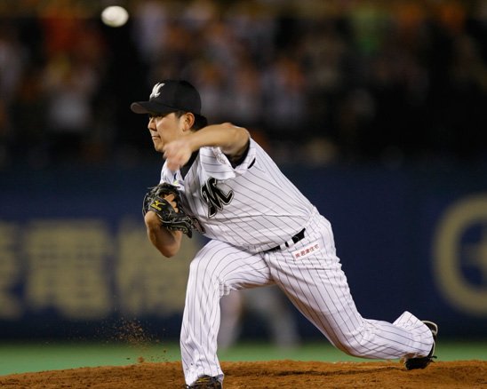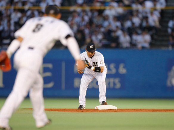 1番 西岡 二ゴ 2-1からの4球目、アウトコースへのストレートを弾き返した打球は痛烈な当たりとなったが、セカンド・脇谷の真正面。ボールをこぼした脇谷は、2塁ベースカバーに入ったショート・坂本にトスして1塁ランナー・岡田はフォースアウト。2塁ランナー・里崎は3塁へ進み、打った西岡は1塁に残った。 |