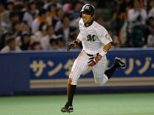 9番 岡田 中安 1-1からアウトコースへのスライダーに食らいつくと、打球はセンター・長野の前で弾んだ!! 3塁ランナー・福浦が生還して5対1! 1塁ランナー・里崎は2塁へ進塁。岡田はプロ入り初ヒットで初打点を挙げた!! ![]() 5