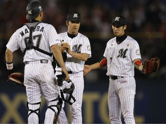 投手 秋親 投手 小林宏 【千葉ロッテ選手交代】 ピッチャー・秋親→小林宏 ファースト・金泰均→塀内 代走・岡田→センター |