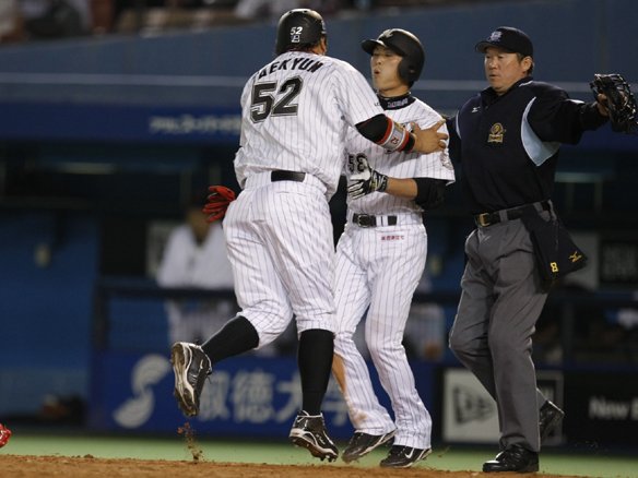 4番 金泰均 左中本 初球、甘く入った真ん中のスライダーを振り抜き、打球は大きな当たりとなりグングン伸び、そのまま左中間スタンドに飛び込んだ! 金泰均の16号ソロで3対4! 1点差に詰め寄る! ![]() 3