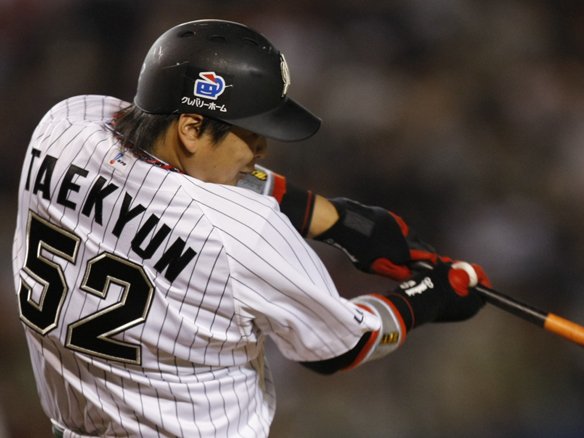 6番 サブロー 右安 初球、アウトコース低めのストレートを逆らわずに振り抜き、痛烈なライナーとなった打球はジャンプするセカンド・東出の頭上を越えライト前に抜けていった! 2塁ランナー・金泰均が3塁を蹴って一気にホームイン! 2対0! ![]() 2