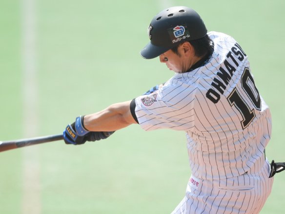 大松はセンター前へ痛烈なヒットを運ぶ!