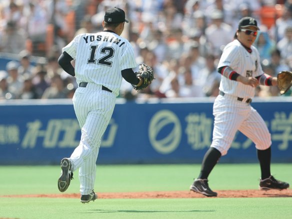 2番 平野恵 遊ゴ 2-2からのアウトコース低めへのストレートを打ち返されると、力の無いゴロをショート・西岡が前進して捕球しすぐさま1塁へ送球した! |