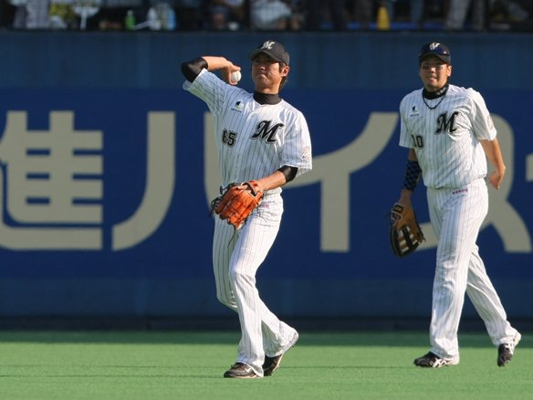 8番 里崎 右飛 0-2からの高めに入った変化球を弾き返すと、右中間に飛んだ打球をライト・桜井に捕球された。 |