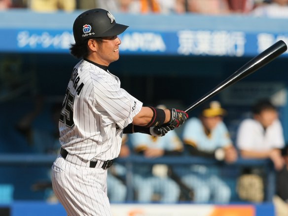 3番 マートン 中安 初球の低めへのストレートをたたかれると、打球がセンター前へ飛んでいった。 |
