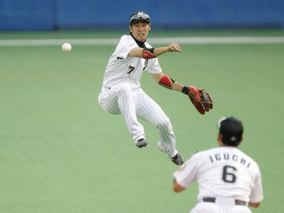 投手 上園 1番 西岡 左飛 1-1からのアウトコースへのボールを流し打つも、レフト前に落ちようかという打球をレフト・林に体勢を崩しながらもキャッチされた。 |