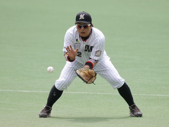 井口は鳥谷の打球を2塁ベース後方でキャッチ!