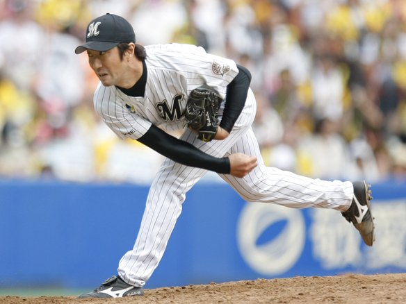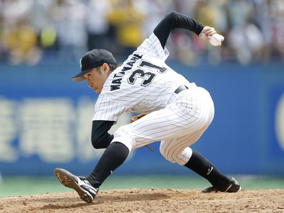 投手 藤川球 得点圏にランナーを置いたマリーンズでしたが、あと一本が出ず無得点に終わってしまいました。試合は延長戦へと突入しますが、交流戦最終戦を制するのはマリーンズ! |