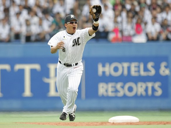 8番 里崎 右飛 初球のアウトコースへのストレートを弾き返したが、打球をライト・藤川俊がほとんど動かずにキャッチ。 |