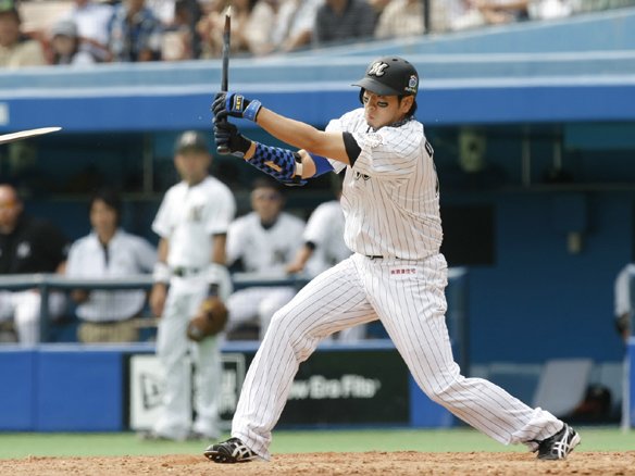 2番 今江 二ゴ 0-2からの高めのスライダーを流し打ったが、打球は前進守備を敷いていたセカンド・平野の正面。3塁ランナー・里崎は生還できず。 |