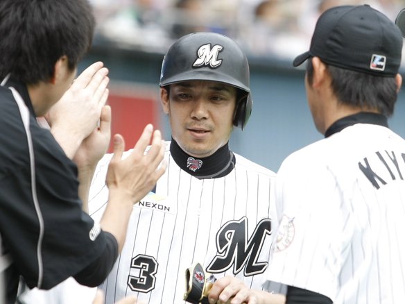 こちらも取られたら取り返すべく、先頭バッターの里崎がヒットで出塁しましたが、後続が打ち取られてしまい得点には至りませんでした。まず守備でリズムを作り大量得点への流れを作っていきたいところです! |