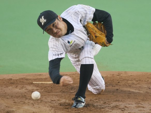 投手 金子千 今江が内野安打を放ちましたが、後続が打ち取られて得点を奪うことができませんでした。薄くもやがかかっているマリンスタジアムの夜空を一気に晴らすような猛打に期待しましょう!! |