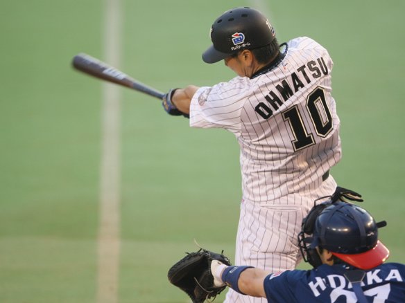 6番 サブロー 左飛 1-3からインコース高めのストレートを高く打ちあげた打球は、レフト・T-岡田にキャッチされてしまった。 |