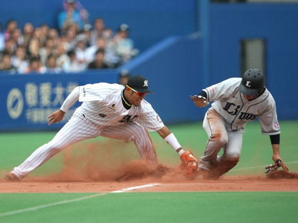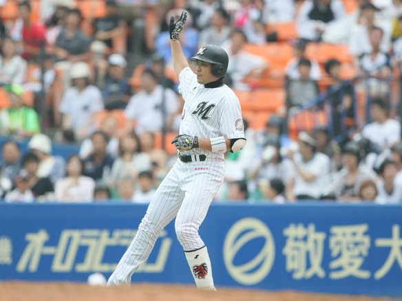 3番 井口 中安 0-1からから甘いコースへのパームを逆らわずに打ち返すと、打球はセンター・栗山の前で弾んだ! 2塁ランナー・岡田が生還して1対6。1塁ランナー・西岡は2塁へ。 ![]() 1