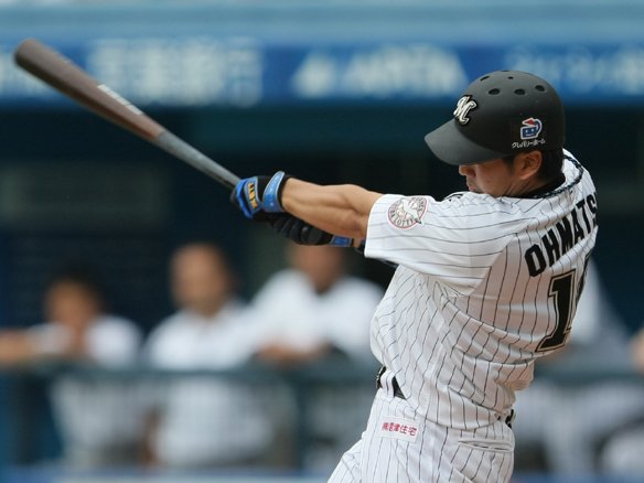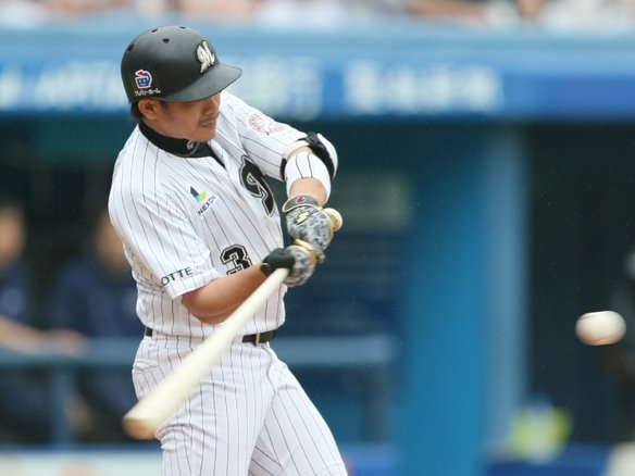 6番 サブロー 左安 初球、インコースの甘いところへ投じられたストレートを引っ張ると、打球は三遊間の真ん中を破っていった! |