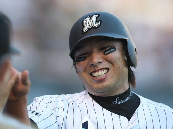 6番 サブロー 中安 2-1からのやや甘く入ったストレートに食らいつくと、打球はしぶとく二遊間を抜けセンター前へ転がっていった! 3塁ランナー・今江、2塁ランナー・井口がホームインし2対0! ![]() 2