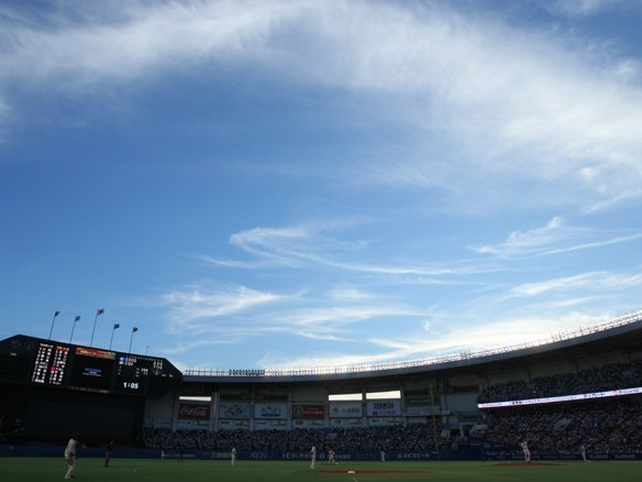 投手 マーフィー 5番 ブラウン 中飛 初球のインコースへの変化球をすくい上げられるも、センター・岡田が右中間寄りに動きながら打球をつかんだ。 |