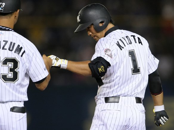 2番 平尾 空三振 初球から1塁ランナー・片岡がスタートすると、キャッチャー・里崎は投げることが出来ず盗塁成功。これで片岡は今季40個目の盗塁。 |