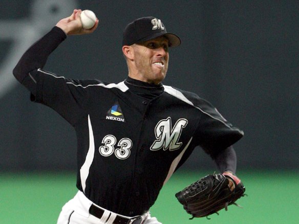 8番 里崎 三ゴ フルカウントからアウトコースのスライダーを引っ掛けてしまい、平凡なゴロとなった打球は三遊間でサード・小谷野が捕球し1塁に送球した。2塁ランナー・福浦は動けず。 |