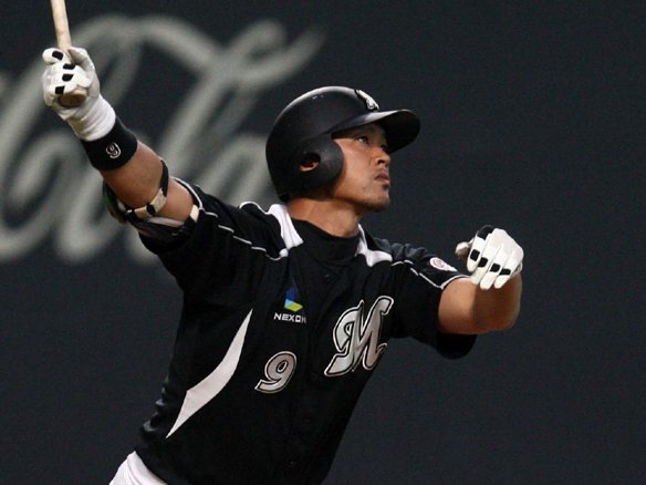 福浦は右翼席に本塁打を運ぶ