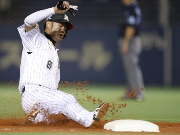 | 1番 川崎 遊ゴ失 2-3からの8球目、アウトコース低めのストレートをピッチャー返しされた打球は、ピッチャー・成瀬が差し出したグラブの下を抜け、2塁ベース付近に回り込んだショート・西岡が捕球体勢に入ったが、バウンドが変わり、西岡は体に当てて前方にこぼしてしまった。すばやく拾い上げたが、1塁ランナー・田上は2塁へ。打った川崎も1塁へ。西岡にエラーが記録された。 | |