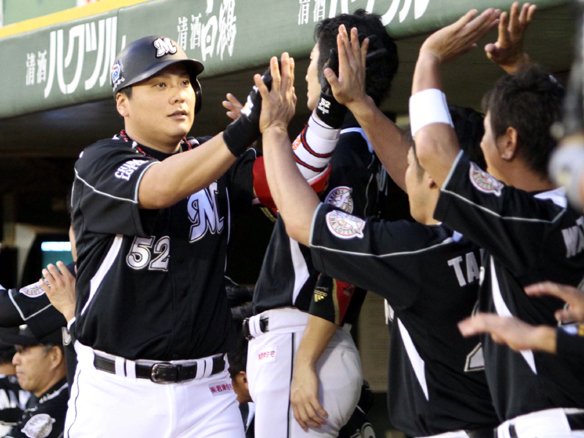 4番 金泰均 右本 2-2からアウトコース低めのストレートを弾き返し、大きな放物線を描いた打球はそのままライトスタンドに飛び込んだ! 金泰均の19号2ランで2対0! 金泰均にとっては6月29日のホークス戦以来となる待望の一発! ![]() 0