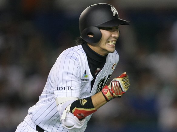 4番 金泰均 左安 2-2からファールで粘った後の6球目、アウトコースのスライダーを引っ張った打球は、横っ飛びしたサード・小谷野の横をしぶとく破り、レフト前に抜けていった! この試合初めて得点圏にランナーを進めた! |