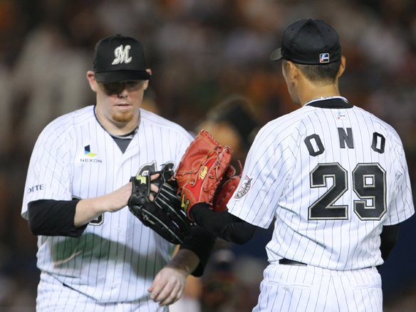 投手 小野 【千葉ロッテ選手交代】 ピッチャー・マーフィー→小野 |