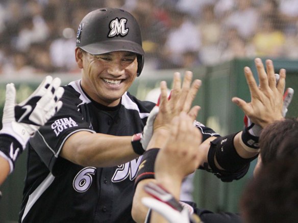 3番 井口 右翼二 0-1からインコースのストレートをうまく運んだ打球は、ライト線際に落ちた! 2塁ランナー・西岡に続き1塁ランナー・今江が本塁に激しいスライディングで滑り込み2対2の同点! 打った井口は2塁へ! 今江のスライディングで吹き飛ばされたキャッチャー・鶴岡が今江につかみ掛かり、両軍が入り乱れての状態となった。 ![]() 2